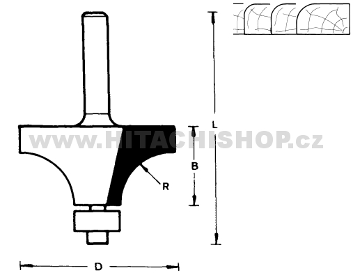 Fréza zaoblovací s ložiskem, úchyt: 6 mm, D: 22,2 mm, B: 12,7 mm, L: 49 mm, R 4,8 mm